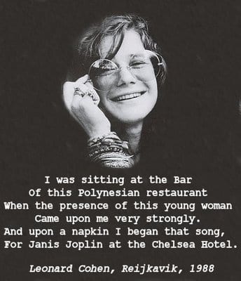 …”Mi ricordo bene di te al Chelsea Hotel“, cantava Leonard Cohen.