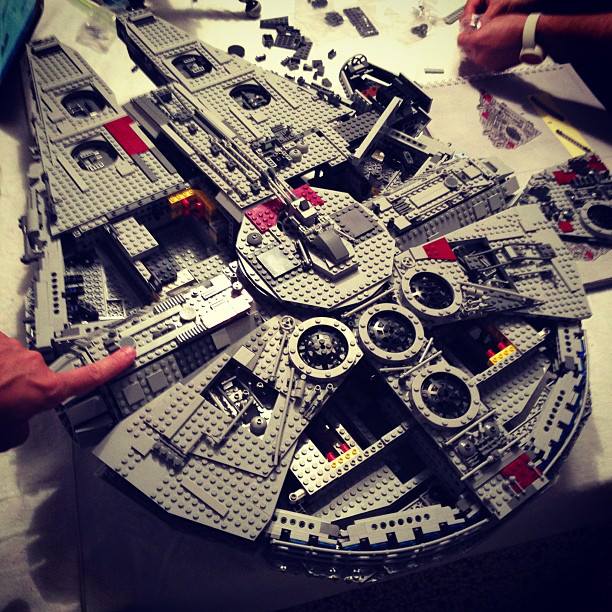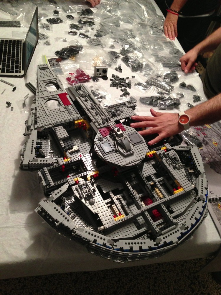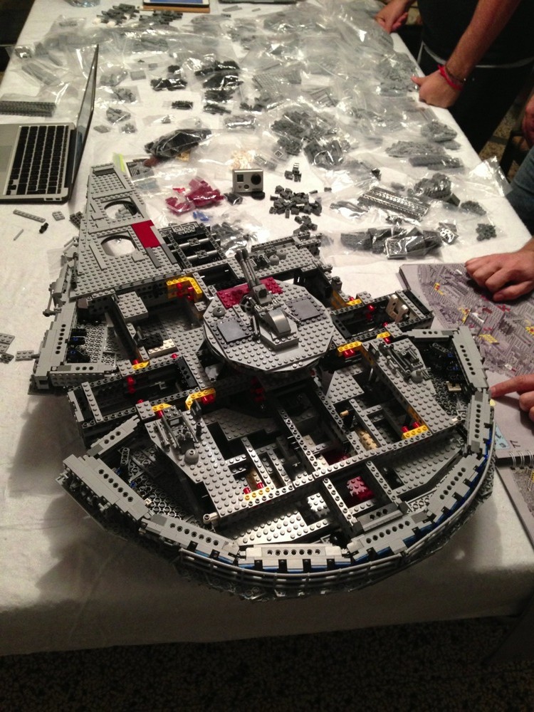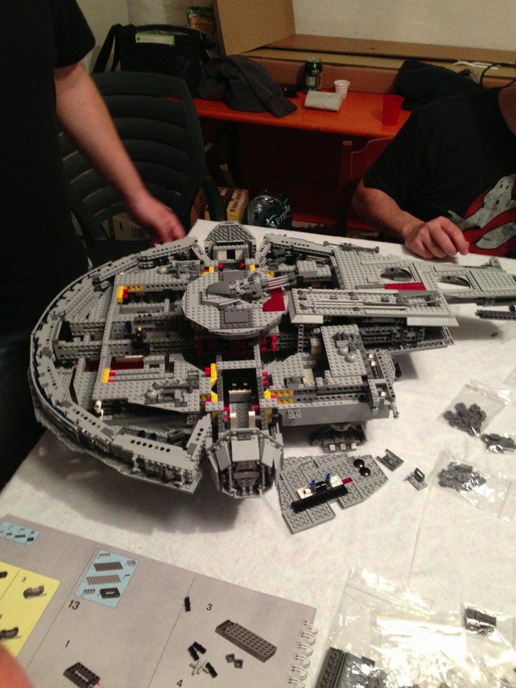 Tra amici organizziamo delle “Nerd Night”, solitamente cazzeggiamo, discutiamo, ci spariamo con le Nerf e, in generale, ci divertiamo. Lo scorso lunedì avevamo un modo particolare di divertirci: costruire il Millennium Falcon UCS della Lego da 5200 pezzi.