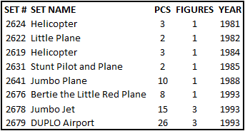 Dal 1983 al 1987 vengono prodotti alcuni set dedicati agli aerei ed agli aeroporti. La serie verrà ripresa succesivamente nel 2005, ed interrotta nel 2006.