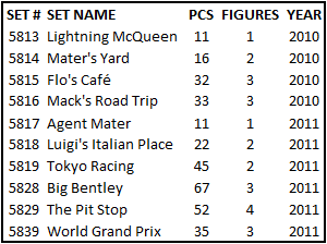 Direttamente da Pixar Animations, arrivano i set di Saetta McQueen, Guido, Mack e gli altri…