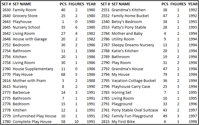 Playhouse, prodotto dal 1980 al 2004, è un set incentrato sulla vita domestica. Si tratta fondamentalmente di una versione Duplo di Homemaker, il “LEGO casa delle bambole”, formato principalmente da set che rappresentano stanze o case.