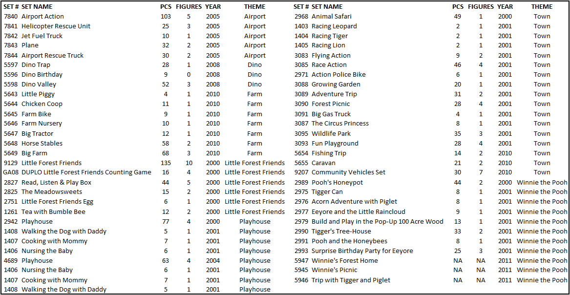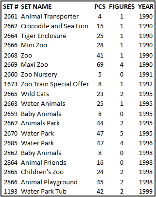 Oltre al sottotema Farm, legato agli animali d’allevamento, Duplo dispone anche di un sottotema Zoo, che verrà assorbito da Ville nel 2005.