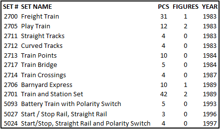 Anche il treno più famoso del mondo è approdato alla Duplo, con 8 set prodotti tra il 2005 ed il 2009, fino a quando la licenza non è passata a Mega Bloks.