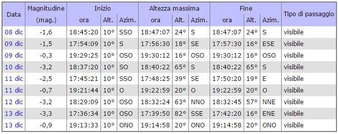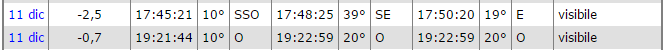 Adesso, a titolo d’esempio, ipotizziamo di voler osservare la stazione spaziale Giovedì 11 Dicembre.
